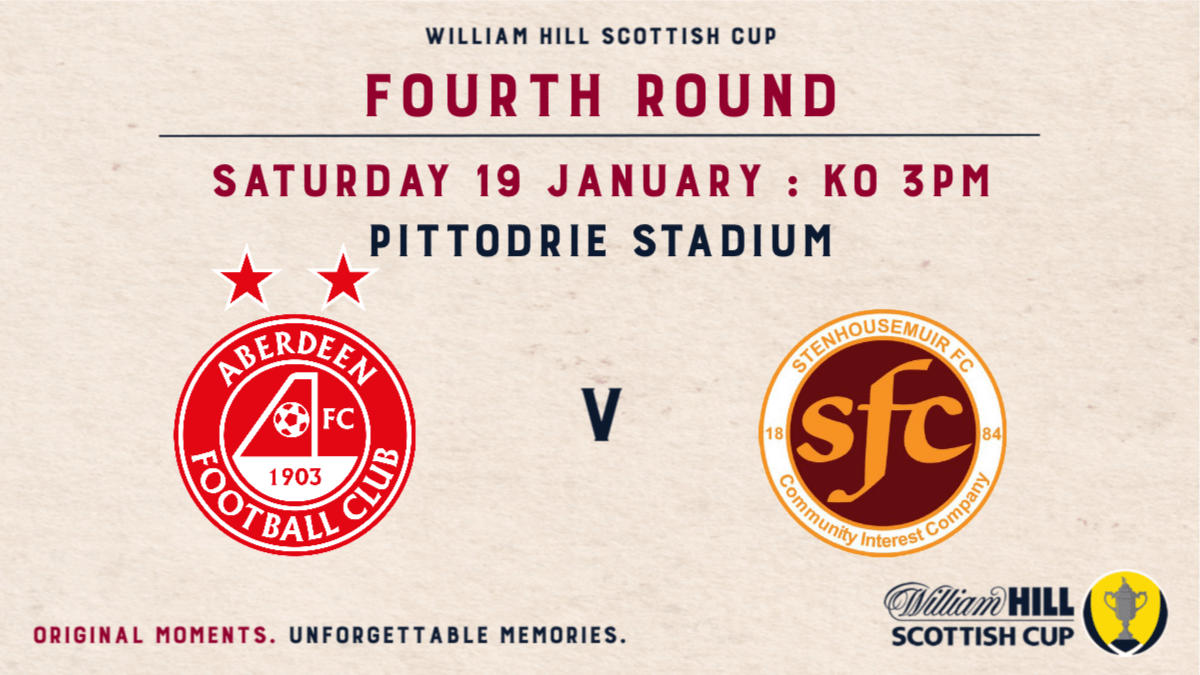 Time is running out to secure your tickets for Aberdeen FC v Stenhousemuir FC in the William Hill Scottish Cup 4th Round.