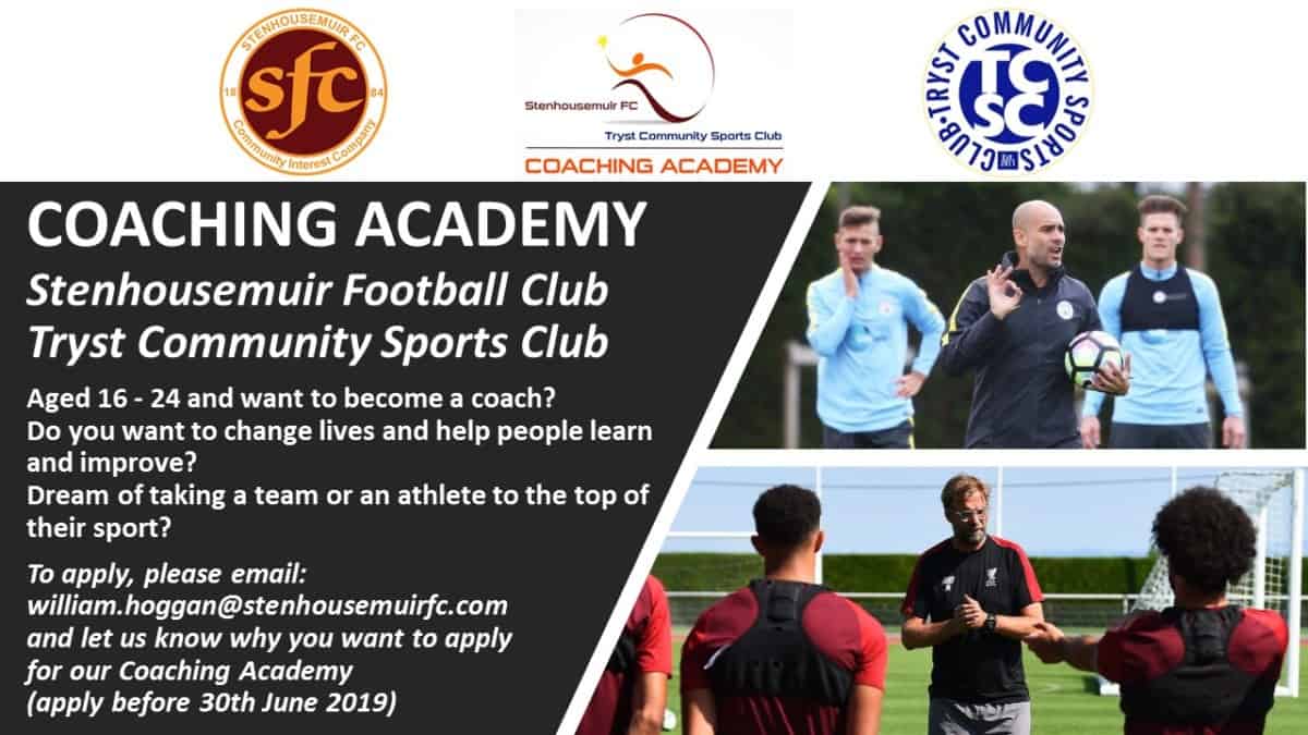 Stenhousemuir FC and Tryst Community Sports Club launch Young Persons Coaching Academy and is inviting applications from 16-24 year olds with a passion for sport and an interest in developing themselves as a football or sports coach.