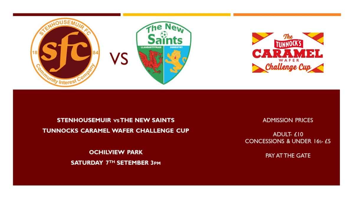It will be a landmark occasion for the Warriors with The New Saints the first non Scottish side the Club has ever faced in a competitive game. The 8 in a row Welsh Champions are regular travelers who compete in the qualifiers for European competitions every season so are unlikely to be fazed by a short trip up the road to Gladstone Road. The home side have of course won the Challenge Cup and will be hoping to make it through to round 4 of the newly named Tunnocks Caramel Wafer Cup.