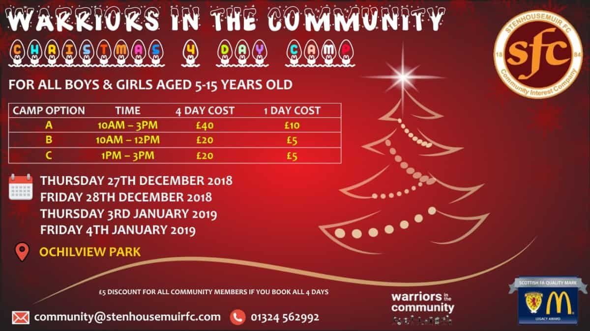 Call: 01324 562 992 or Email: community@stenhousemuirfc.com to book your child’s place